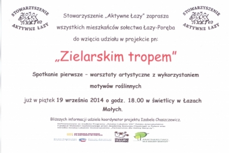 19 września - projekt "Zielarskim tropem" - pierwsze zajęcia - świetlica w Łazach Małych godz. 18.00
