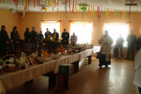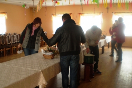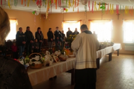 W Wielką Sobotę wierni zbierają się w świątyniach , kaplicach i przed krzyżami w sołectwach ,gdzie odbywa się święcenie pokarmów i tak też było w świetlicy wiejskiej w Miłosławicach.Święconka rozpoczęła się o godzinie 11.30 dnia 30.03.2013 roku.Pokarmy poświęcił ks. wikary Tomasz Bednarczuk. Mieszkańcy przynieśli pięknie przystrojone koszyki ,przybrane bukszpanem i białymi serwetkami. W koszyczkach znalazły się różne produkty m.in. chleb , jajka wędliny , sól , chrzan , babka wielkanocna i baranek. Chleb święci się na pamiątkę Jezusa Chrystusa , który jest chlebem życia.Jajko to symbol początku , nowego życia oraz narodzin i zmartwychwstania .Wędliny symbolizują dostatek i zamążność .Sól oznacza prostotę życia , a chrzan ma przypominać nam o pokonaniu przez Chrystusa goryczy jego męki.Baranek natomiast symbolizuje zmartwychwstanie Chrystusa oraz jego ofiarę za grzechy ludzi.