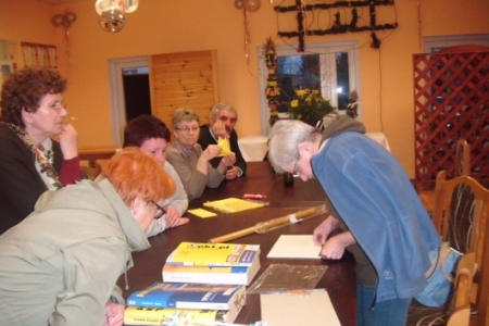 Tym razem na warsztatach mieszkańcy dnia 17.04.2013 r. zgromadzili się ,aby wykonać wspólnie kusudamę.