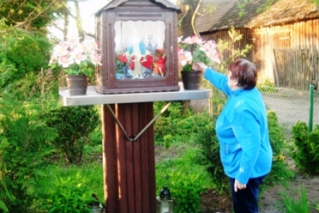 W Miłosławicach przez cały maj koło Krzyża również mieszkańcy wspólnie modlą się i śpiewają pieśni ku czci Matki Bożej .