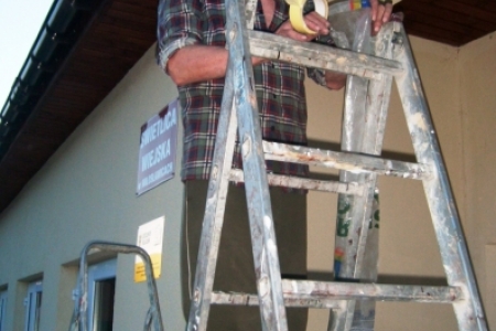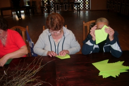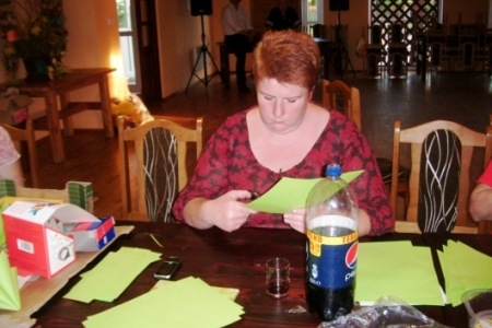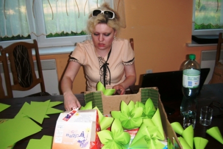 Dnia 12.06.2013 r. na warsztatach grupa artystyczna wykonywała z serwetek róże na kiermasz w ,,Ostojach ''Panowie zawieszali wcześniej przygotowane kule z papieru mocując je do sufitu.