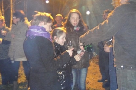 Wieczorem wszyscy pełni dobrego humoru i nadzieji na przyszły,lepszy NOWY ROK zebrali na placu i zaczeła sie wspólna impreza. Płoneło ognisko, błyły tańce, dobra zabawa i pyszne "jedzonko". O północy życzeniom i uściskom nie było końca