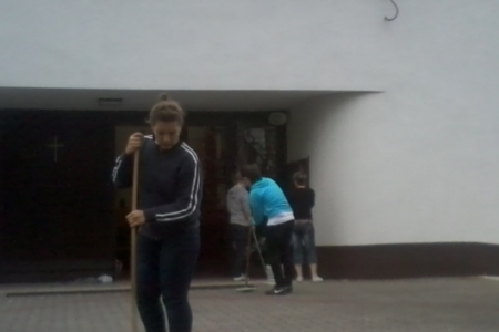 Młodzież chętnie pomaga w przygotowaniach do odwiedzin Biskupa.