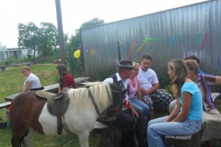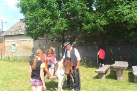Wielki aplauz wywołało pojawienie się pana Szymanka z Rakłowic, prowadzącego kucyka Pirata, który miał zaplecione warkoczyki z czerwonymi kokardami. Dzieci dosłownie oblepiły sympatycznego konika, prowadzały go, jeździły na nim, dokarmiały, poiły wodą,