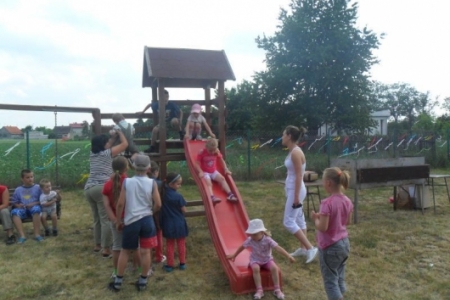 Dla dzieci przygotowano wiele konkursów, które prowadziły panie: Marciniak i Kindrat - rzut dyskiem plażowym, skakanki, odbijanie piłki, przeciąganie liny (zaangażowali się również dorośli) puszka Pandory z pytaniami, konkurs piosenki, który wygrała Zuzia Delag. Wszyscy biorący udział w konkursach otrzymali nagrody.