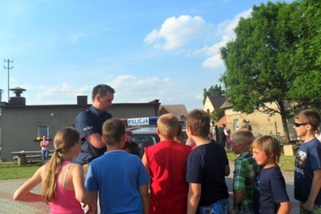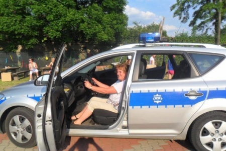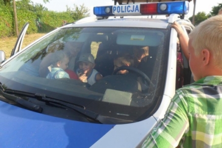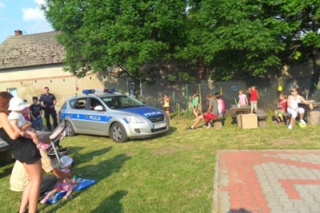 Imprezę zaszczycił ks.Proboszcz, który ciepło przemówił do zebranych - a gadane to ma! Potem na sygnale wjechał policyjny radiowóz- dzielnicowy Łukasz Łukowiak ze swoim kolegą pokazywali dzieciom sprzęt policyjny i nie tylko.Dzieciaki ładowały się do policyjnego wozu. Przyszedł czas na kiełbaski z grilla obsługiwanego przez pp. Kuriatów.