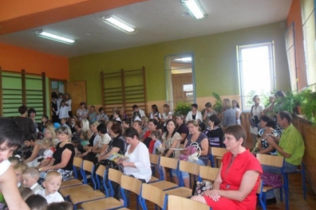 W sali gimnastycznej zebrała się cała społeczność szkolna. Z ramienia Urzędu Gminy na uroczystości pojawiła się p. Justyna Mujta, oraz przedstawiciele Rady Gminy: M. Rajczyk, R. Kindrat, W. Korda. Dużą grupę widzów stanowili rodzice uczniów.