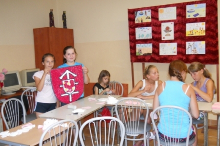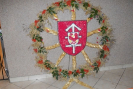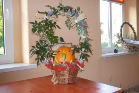 Pakosławsko przygotowuje się do dożynek. Panie Maria Ponichter i Małgorzata Kuriata pracują nad dekoracją dożynkową (wieniec dożynkowy, kosze na warzywa i owoce). Dzieci z kółka plastycznego wykleiły herb Cieszkowa.