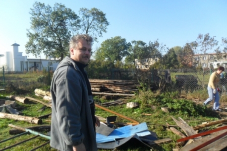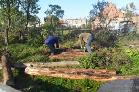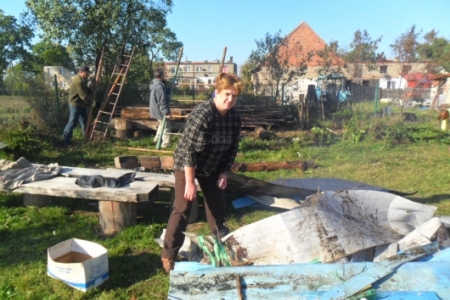 22.10.2011r od godziny 10 przy ładnej, słonecznej pogodzie przystąpiono do prac porządkowych na placu przy remizie w Pakosławsku.