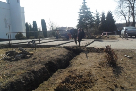 Rozpoczęto prace przy budowie nowego ogrodzenia przed kościołem.