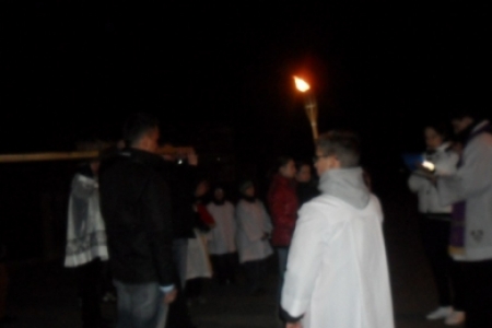 Świeżo zakupiony sprzęt nagłaśniający nie zawiódł oczekiwań i mogliśmy w skupieniu słuchać czytanych przez lektorów rozważań o ostatniej drodze Chrystusa.