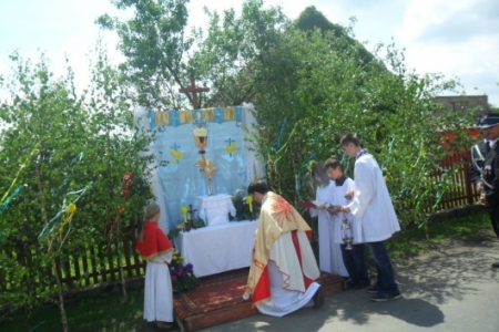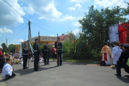 07.06.2012r Piękna, słoneczna pogoda przywitała wiernych którzy ruszyli w procesji do czterech ołtarzy drogami Pakosławska, aby szczególnie wspomnieć w tym dniu Ostatnią Wieczerzę i Przeistoczenie chleba i wina w Ciało i Krew Jezusa Chrystusa.