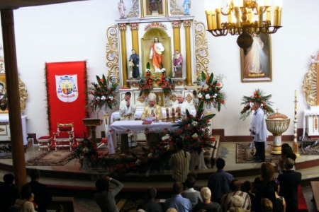 Msza Święta rozpoczęła się o godzinie 13.00. Przewodniczył jej ks. Biskup Edward Janiak. Na Mszy byli obecni księża z dekanatu milickiego, oraz księża, którzy byli proboszczami w Pakosławsku: ks. Ludwik Graf i ks. Janusz Gajewski.