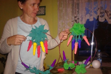Panie: Anna Kaszuba i Bożena Maryjowska wykonują ozdoby i dekoracje najróżniejszymi technikami (np. quilling, origami, frywolitka)