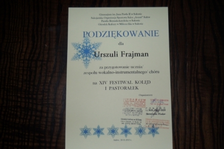 W kategorii zespoły wokalne - III miejsce otrzymał Zespół wokalno – instrumentalny przy Parafii w Pakosławsku – za wykonanie pastorałek „Przekażmy sobie znak pokoju” oraz „Uciekali”.