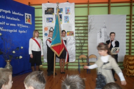 Po wprowadzeniu sztandaru szkoły, zaśpiewano Hymn Polski oraz Hymn Szkoły.