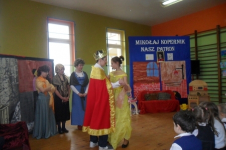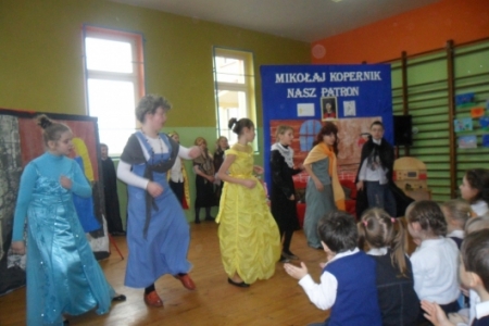 Uczniowie z klas V i VI przygotowali przy pomocy pań Dwojak i Paluszkiewicz radosną i żywiołową inscenizację bajki o Kopciuszku.