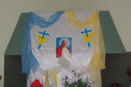 W sobotę 3-go maja zostaliśmy zaproszeni z naszym przedstawieniem o życiu św. Jana Pawła II do świetlicy wiejskiej w Jankowej. Bardzo miło przywitała gości i mieszkańców p. Grażyna Krajewska. Nasz wysiłek został nagrodzony oklaskami i słowami podziękowania.