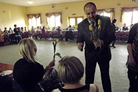 Wszystkich przybyłych tego dnia do świetlicy przywitała pani sołtys Grażyna Szymczyk. Następnie radny Rafał Staniecki z panami z Rady Sołeckiej wręczyli wszystkim przybyłym na świetlicę pierstniczankom żółte tulipany. Ufundował je wójt gminy Krośnice Mirosław Drobina, który także życzył paniom wszystkiego najlepszego.