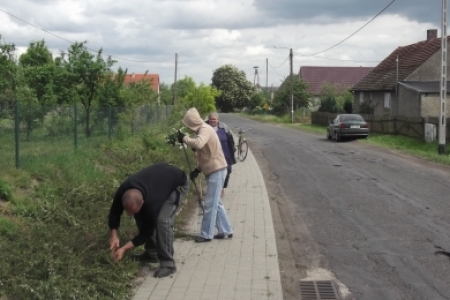 Dnia 12 maja 2012r. mieszkańcy zajęli się porządkowaniem trawników biegnących wzdłuż chodników. Prace obejmowały usuwanie zarośli a także przyciananie krzewów, które są posadzone wzdłuż drogi głównej. Dzięki zaangażowaniu mieszkańców tereny biegnące przy drodze są zadbane i zawsze miło jest spacerować czystym chodnikiem.