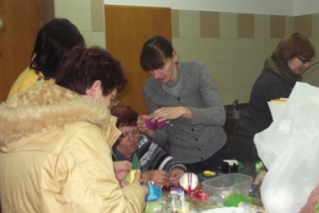 Dnia 15.11.2012r. o godz.17.00 odbyły się kolejne zajęcia z rękodzieła. Na warsztatach kontynuowano rozpoczęte ozdoby choinkowe. Mieszkanki bardzo chętnie zdobiły bombki i robiły papierowe gwiazdy betlejemskie, oraz papierowe aniołki.