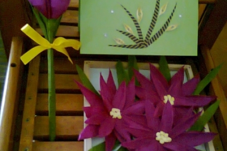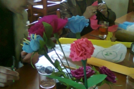 Dzieci wykonały piękne kartki, które same przyozdobiły i włożyły wnie swoje serce. W pracach pomagały nie tylko panie prowadzące ale również członkinie rady sołeckiej wraz z panią sołtys. Panie wykonały kilkanaście kwiatów z krepiny i pokazywały dzieciom jak je w łatwy sposób zrobić.