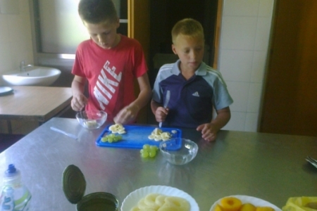 Nasze pociechy chętnie uczestniczą w takich zajęciach i w licznym gronie spotykają się na świetlicy aby rozwijać swoje umiejętności. Tym razem na dzieci czekała zdrowe warsztaty kulinarne, gdyż zadaniem najmłodszych mieszkańców Pierstnicy było przygotowanie sałatek owocowych. Do dyspozycji dzieci było kilka rodzajów owoców i każdy mógł skomponować swoją własną ulubioną sałatkę.