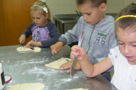 Podczas zajęć dzieci z pomocą pań z koła gospodyń wiejskich przygotowały smaczne ciastka. które miały kształt truskawki. Każde z dzieci mogło samo wykroić swoje ciastko i dodać do niego przeróżne smakołyki, np czekoladową posypkę, dżem i inne pyszności. Podczas oczekiwań na piekące się w piekarniku ciastka w sali obok dzieci miały możliwość kolorowania obrazków, oraz wykonania pieknych słoników z papieru.