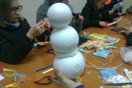 Podczas warsztatów dzieci wykonały również Ekologiczną ozdobę Bożonarodzeniową na konkurs, który odbędzie się we Wrocławiu podczas wystawy stołów Bożonarodzeniowych.