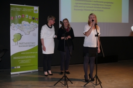 Dnia 27 marca 2014 r. w Milickim KOM-ie odbyła się uroczysta Gala podsumowująca pięcioletnią działalność programu Działaj Lokalnie. Z tej okazji zaproszono do udziału reprezentantów projektów biorących udział w programie. Nasze przedstawicielki chętnie skorzystały z zaproszenia i wzięły udział w gali.Podczas uroczystości podziękowano grantobiorcom, oraz rozkrojony piękny duży tort. Przedstawiciele wybranych projektów opowiadali o swoich inicjatywach, oraz mogli pochwalić się produktami, które powstały podczas trwania projektów. Nie zabrakło również oprawy artystycznej- można było obejrzeć występ Leśnych Dziadów z Dziadkowa. Wyświetlono również filmy zrealizowanych inicjatyw.