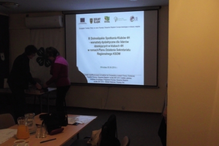 Dnia 5 kwietnia 2014r. w siedzibie Dolnośląskiego Ośrodka Doradztwa Rolniczego we Wrocławiu odbyło się spotkanie dla liderów klubów 4H podczas którego przeprowadzono szkolenie „Moje cele jak spowodować by miały ręce i nogi”, który poprowadziła pani Renata Mikulewicz przedstawiciel Fundacji „Ogrody Twojego Sukcesu” oraz warsztaty które poprowadziła pani Ewa Kokoszka, a była to współczesna twórczość ludowa „Kwiaty wstążką malowane”. Podczas zajęć uczestnicy szkolenia mogli spróbować swoich sił w wykonywaniu kwiatów na płótnie za pomocą przeplatania wstążek.