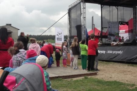 Na scenie podczas występów artystycznych nasze sołectwo reprezentował dziecięcy zespół „Pierścienie”, który swoim repertuarem „rozruszał” widownię.