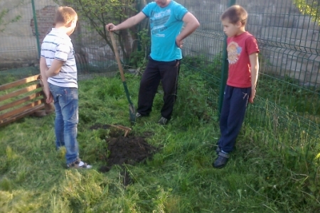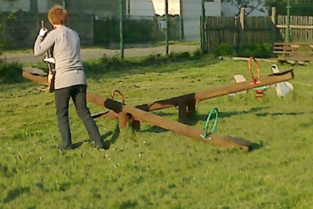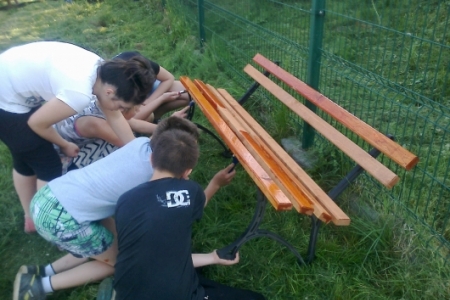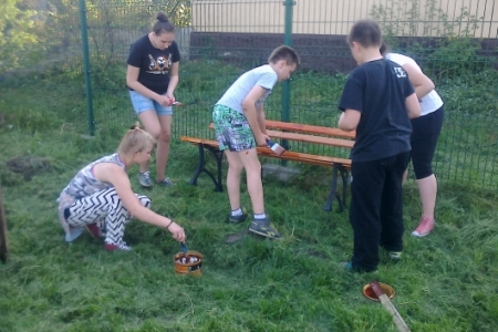 Na umówioną godzinę przybyli nie tylko dorośli ale i również dzieci i młodzież, którzy korzystają z placu zabaw. W ruch poszły farby i pędzle gdyż drewniane i metalowe elementy konstrukcji były już podniszczone. Dzieci chętnie zajęły się malowaniem huśtawek i drewnianego domku ze zjeżdżalnią a dorośli zajęli się wykopywaniem starych i połamanych ławek w miejsce których stanęły zakupione z funduszu sołeckiego nowe i solidne ławki. Praca przy odnowie urządzeń do zabaw sprawiła dzieciom i dorosłym wiele radości. Młodsza część „ekipy remontowej” biegała z pędzlami i postanowiła pomalować nie tylko huśtawki ale i przy okazji siebie nawzajem. Zabawa była przednia a zyskał na tym wygląd naszego placu zabaw.