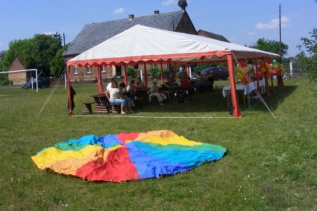 Dekorację na majówkę przygotowała A. Chrust, a imprezę wsparli rzeczowo sponsorzy: Bank Spółdzielczy w Miliczu,” Piekarnia Familijna”, Hurtownia „Partner „i sklep z kosmetykami p. J. Szymańskiej. Namiotu użyczyło starostwo Powiatowe w Miliczu.