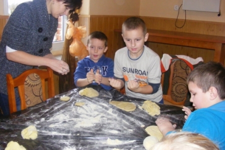 Końcowka I tygodnia ferii była pasjonująca.W czwartek p. Kasia poprowadzila zajęcia plastyczne oparte na masie solnej.Każdy mógł wykonać dowolną liczbę figurek.Było zabawnie.Następnie grupa najstarszych chłopców przygotowała sałatkę owocową.Pycha!!! Zabawy z chustą Klanzy,gry sportowe i stolikowe wypelniły resztę zajęć.