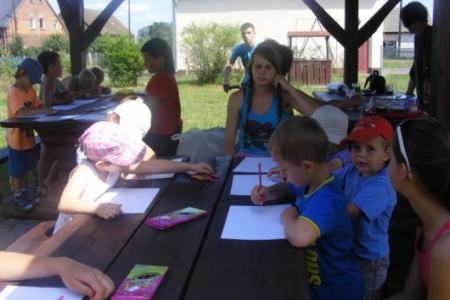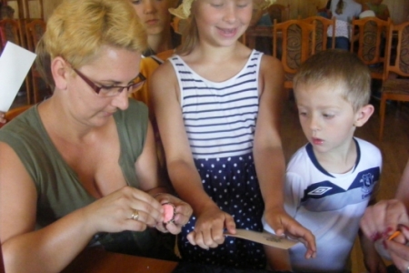 Poza tym dzieci biorą udział w zajęciach plastycznych/dzisiaj powstawały legitymacje "Poszukiwacza strychowych skarbów"/, zajęciach sportowych.Najstarsi pomagali w przygotowaniu toru konnego do malowania.