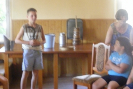 W poniedziałek,8 lipca rozpoczęliśmy nasze wakacje. W tym roku motywem zabawy jest poszukiwanie strychowych skarbów.Starsze dzieci odwiedziły mieszkanców sołectwa prosząc ich o wypożyczenie rzeczy używanych dawniej na polskiej wsi.Część eksponatów przynieśli w ten sam dzień, pozostałe we wtorek. Będziemy je gromadzić do końca tygodnia.