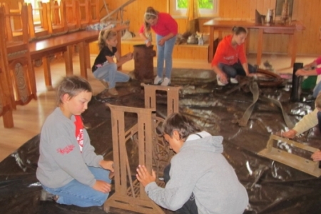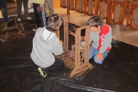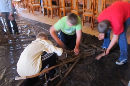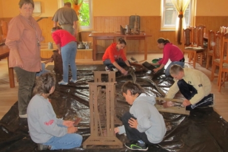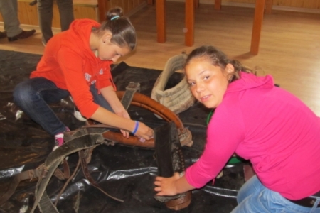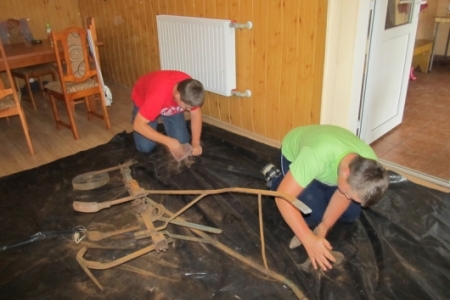 Następnie dzieci zabrały się do pracy.Z dużym zaangażowaniem ścierały rdzę, czyściły elementy skórzane, nakładały pastę itp. Zostało jeszcze sporo pracy.