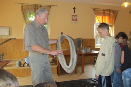 Na spotkanie z uczestnikami wakacyjnych zajęć przyszedł znany nie tylko u nas,świetny specjalista od renowacji starych rzeczy codziennego użytku - p. Zdzisław Okrutnik. Udzielił dzieciom fachowych porad dotyczących czyszczenia i konserwowania przedmiotów z żelaza, metali kolorowych, drewna i szkła.