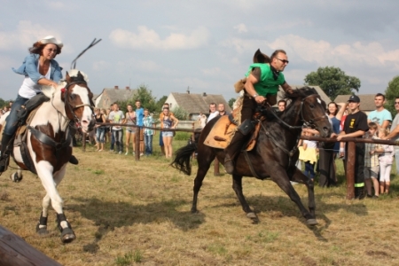 Jeżdźcy rywalizowali w 5 konkurencjach :zbieraniu obręczy,wyścigu kłusem, wyścigu galopem,zrywaniu bukietu i zrywaniu kaczora.W szranki stanęło 32 jeźdźców wierzchem i 8 zaprzęgów z terenu Dolnego Śląska i Wielkoposki.Walka była bardzo emocjonująca , w zamian jeźdźcy i konie zbierali brawa od widowni.W zbieraniu obręczy zwyciężyła Jagoda Matkowska, wyścig kłusem wygrał Radosław Łęcki. W galopie najlepszym okazał się Mateusz Janicki. Bukiet natomiast padł łupem Adama Bizana.Kaczora zaś zerwał ,ku zaskoczeniu wszystkich , najmłodszy uczestnik Marcin Kątny.Kunsztem jazdy wykazali się także powożący.Pierwsze miejsce zajął Paweł Śmichura z luzakiem Mariuszem Ostromęckim.