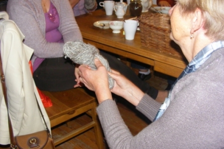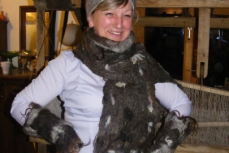 29 października odwiedziliśmy gospodarstwo Beaty Piekalskiej w Lędzinie.Wizyta związana była z kolejną techniką naszej ANU,czyli filcowaniem wełny.W uroczym domku,pełnym zapachu i smaku minionych lat,poznawałyśmy zasady tej techniki.Pani Beata omawiała poszczególne fazy przygotowania wełny do filcowania,pokazała niezbędne do tego przybory i wreszcie wykonane przez siebie wyroby: szaliki, czapki, torby,ozdoby itp.Uczestniczki spotkania były pod wielkim wrażeniem efektów posługiwania się tą technikę.Umówiłyśmy się na praktyczne zajęcia w przyszłym roku.