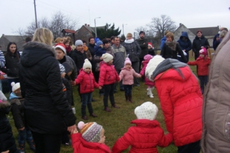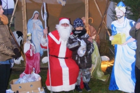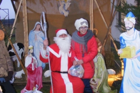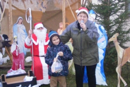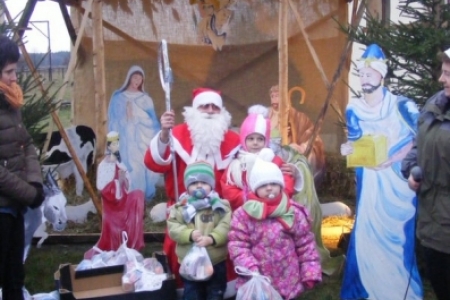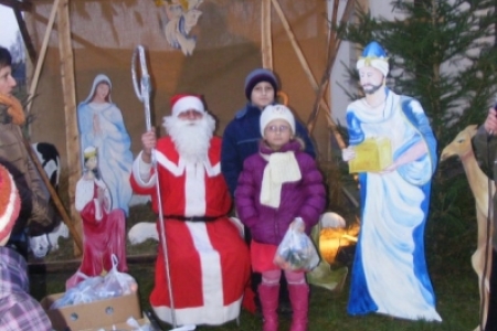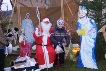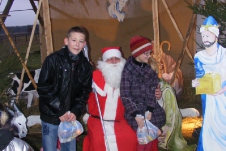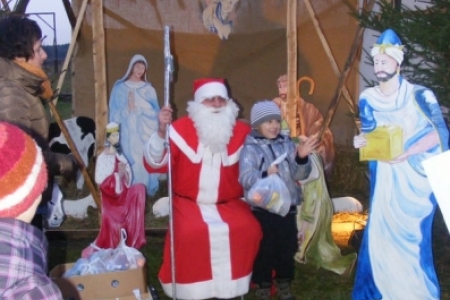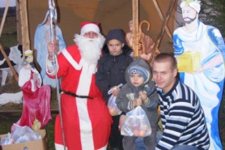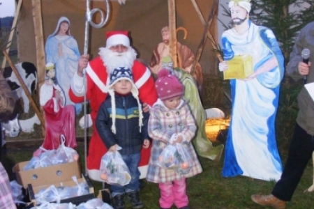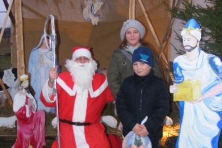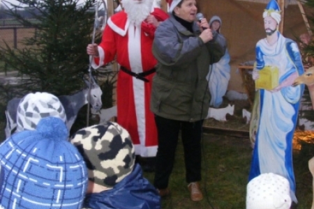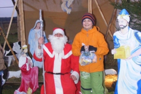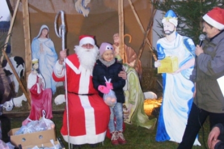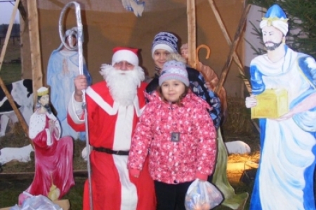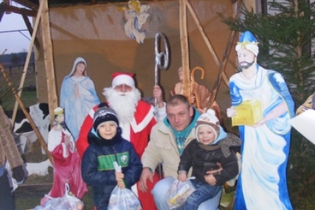 Spóźniony, ale przyjechał.I to z rozmachem,strażackim wozem na sygnale.W niedzielne popołudnie ponad 60 maluchów czekało na niego cierpliwie. Spotkanie odbyło się przy szopce bożonarodzeniowej. Oczekując na gościa dzieci bawiły się, śpiewały i tańczyły. Kiedy wreszcie się pojawił zapraszał do siebie i obdarowywał prezentami. Obiecał,że w przyszłym roku zdąży na czas i nie zapomni o prezentach.