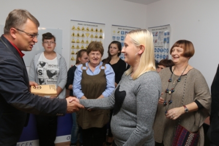 Symbolicznego „zdjęcia z półki ‘’pierwszej książki dokonał starosta milicki Piotr Lech, Tomasz