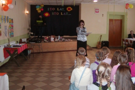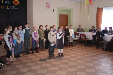 Dzieci i młodzież zaprezentowały program artystyczny – śpiew, taniec. Składając życzenia wręczyły wszystkim przybyłym upominki – niespodzianki. Wszystko to opracowane i wykonane podczas zajęć artystycznych realizowanych w ramach projektu „Dolina Baryczy – to moje miejsce, mój dom”. Przygotowano także wystawę prac uczniów uczęszczających na zajęcia zarówno artystyczne jak i literacko – dziennikarskie prowadzone w ramach tego projektu. Poczytać można było szkolne gazetki, komiks o jesiennej wycieczce oraz skrypty, będące podstawą realizacji zajęć edukacyjnych.