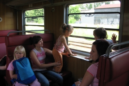 Po przedstawieniu, przejazd autokarem na dworzec PKP, zwiedzenie stacji i ... podróż pociągiem do Antonina. Dla wszystkich dzieci była to pierwsza podróż pociągiem, co oczywiście wzbudziło wiele emocji. W Antoninie, przy pięknej, słonecznej pogodzie kolejna atrakcja – piknik na plaży nad Szperkiem.