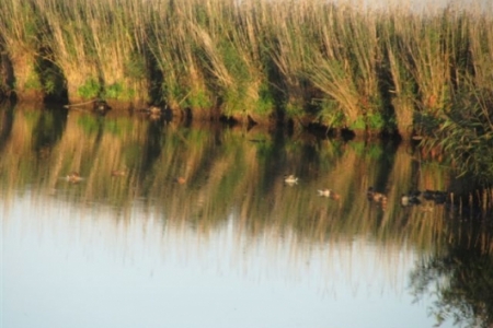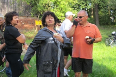 Wyruszaliśmy z wiaty edukacyjnej – Pani Zosia jak zwykle przygotowała niespodzianki: świeże jabłka z sadu i soki, żeby łatwiej nam było pokonać trasę biorąc pod uwagę, że zwiększa się przekrój wiekowy uczestników - są zarówno dzieci jak i emeryci, przyjeżdżają goście z innych miejscowości – dwóch panów przyjechało z Krośnic.Pierwszy postój był już przy Stawach Jaskółczych, a później drogą w kierunku do Dymin z kilkoma postojami. Ptaków jakby mniej w tym roku, ale nad Stawem Wilczym było słychać ryczące jelenie. Największa atrakcja czekała nas nad Stawem Grabownica. Przyjechaliśmy około 18 godziny a wtedy na nocne „legowisko” zlatywały się żurawie, po wodzie niósł klangor żurawi – te które już wylądowały nawoływały szukające miejsca na nocleg – zjawisko fascynujące, warte częstego oglądania.