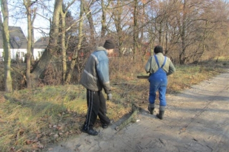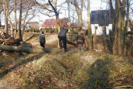 Stare, skłębione chaszcze, spróchniałe drzewa, które z każdym silniejszym wiatrem groziły zawaleniem – wszystko to zostało przez mieszkańców wycięte, uporządkowane, przycięte gałęzie w pozostawionych drzewach. Po raz pierwszy od lat domy wzdłuż drogi będą widoczne od strony boiska, widoczny jest również plac zabaw dla dzieci. Zrobiło się jasno i przestronnie. Dopiero po wycięciu starych drzew widać było jakie stanowiły zagrożenie – często trzymały się tylko na zewnętrznej korze. Ostatni, silny wiatr już nie był dla nas groźny mimo, iż na grobli powalił nawet mniejsze drzewa. Mimo wielkiej sprawności pracujących mieszkańców, do starych dębów przewieszających uschnięte gałęzie nad przystankiem autobusowym, przyjechali strażacy. Z platformy na dźwigu, usunięte zostały niebezpieczne konary. Przy silnych podmuchach wiatru nie musimy już się obawiać spadających gałęzi i łamiących się drzew.