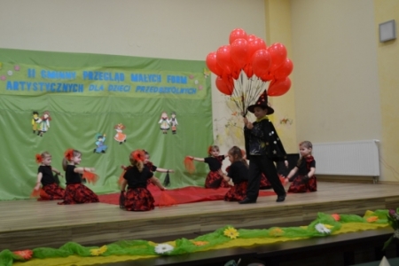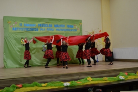 Konkurs pod patronatem Wójta Gminy Sośnie oceniało czteroosobowe jury. Dzieciom bacznie przyglądali się licznie zgromadzeni rodzice i zaproszeni goście. Do rywalizacji stanęło 8 zespołów tanecznych reprezentujących przedszkola z terenu gminy Sośnie. Swoje umiejętności taneczne prezentowały dwie grupy z Przedszkola Samorządowego w Sośniach i Oddziału Przedszkolnego oraz przedszkolaki z Granowca, Cieszyna, Pawłowa, Chojnika i oddziału przedszkolnego w Bogdaju. Każda grupa mogła zaprezentować tylko jeden układ teneczny w czasie od 3 do 5 minut. Wszyscy uczestnicy wykazali się dużymi umiejętnościami tanecznymi, wyczuciem rytmu, wrażliwością estetyczną, popularyzując różne formy ruchowo - taneczne. Były tańce współczesne, do muzyki klasycznej oraz ludowej. Nasze przedszkolaki: Zuzia Dolata, Karolina Dubiel, Wiktoria Pawłowska, Karolina Woźniak, Oliwia Banaś, Lenka i Narinka Wasiela, Jakub Siof oraz najmłodsza - Weronika Czerwieniec (3 lata) zaprezentowali układ taneczny do muzyki F. Schuberta - ,,Serenada", zajmując III miejsce w konkursie. Nagrodę dla przedszkola w postaci zabawek i gier dydaktycznych oraz dyplom, odebrała wychowawczyni B. Paczkowska. Każde dziecko otrzymało również pamiątkowy dyplomik i słodki poczęstunek. Ten dzień na długo pozostanie w pamięci. Był dniem pełnym wrażeń, fantazji, dobrej zabawy tanecznej, rozwijajał przy tym kreatywność małych artystów. Wszyscy świetnie się bawili.
