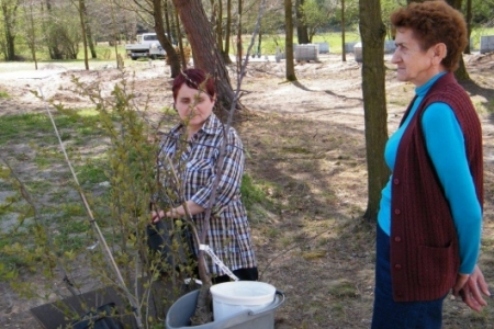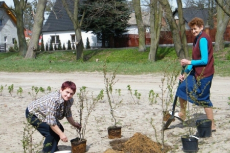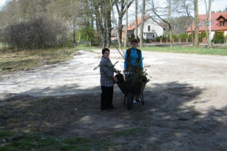 Na festynie w Potaszni dostaliśmy w prezencie drzewko jabłoni ze Szkółki Drzew i Krzewów w Świebodowie. Jabłonie są nie tylko ładnymi drzewami, które często uprawiane są jako rośliny ozdobne, ale też jabłka są najbardziej popularnymi owocami nie tylko ze względu na ich bardzo dobry smak, ale też dużą zawartość witamin i soli mineralnych. Dlatego też postanowiliśmy nasze drzewko posadzić przy placu zabaw dla dzieci. Będzie nie tylko ładnie wyglądać, ale też dzieci będą mogły korzystać z owoców zrywanych prosto z drzewa. Przy okazji jeszcze kilka dodatkowych drzewek i krzewów zostało posadzonych przy alejce i trawniku. Panie Irena Pyziołek i Krystyna Jakubowska jak zobaczyły panią Sołtys z taczką wypełnioną krzewami, natychmiast (jak zwykle) złapały za łopaty i przybiegły pomagać w sadzeniu. Trudno już teraz zliczyć ile mamy nowych roślin a jeszcze posadzimy około 1000 róż, dębów, lip z naszego nowego programu. Jeśli nasza wieś nie jest jeszcze najpiękniejsza, to jak te wszystkie rośliny podrosną, to jesteśmy skłonni się założyć, że będzie najpiękniejszą wsią w Dolinie Baryczy.