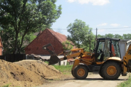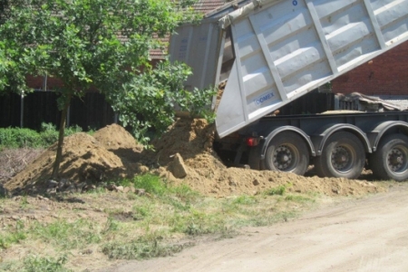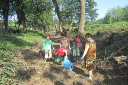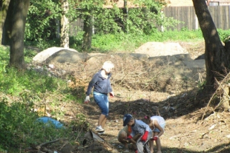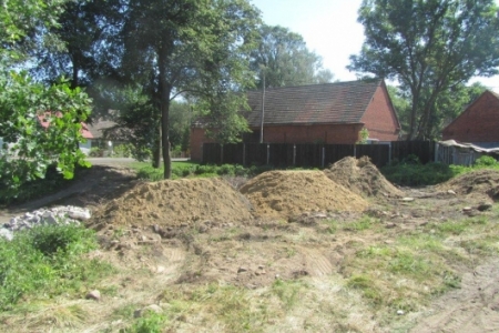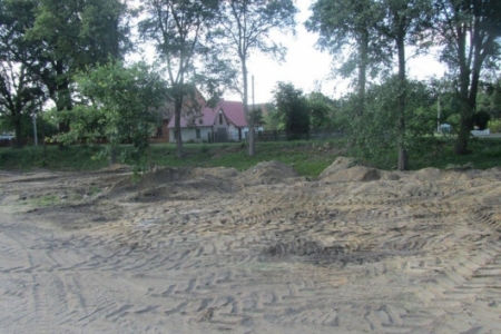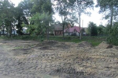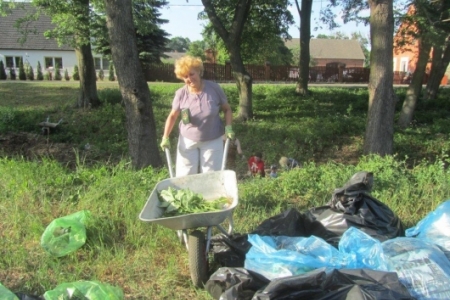 Od rana wielkie wywrotki przywoziły ziemię, którą dostaliśmy od Gminy w prezencie. Na miejscu pracował spychacz a w punkcie pobierania ziemi ładowarka. Wszystko razem trwało 10 godzin. O 16 godzinie mieszkańcy byli proszeni do prac wspólnych przy oczyszczaniu rowu ze śmieci. Tym razem do pracy stawiły się jak zwykle te same panie, które przychodzą niezawodnie za każdym razem i tylko jeden mężczyzna: pan Jarosz, o przepraszam – był jeszcze jeden pan - 4 letni Emilek, który bardzo aktywnie uczestniczył w pracach a przy okazji rozdawał jeszcze kwiaty paniom. Zadziwiające, że tak skromny był zespół panów, ponieważ śmieci to przede wszystkim męska rzecz: butelki po wódce, winie, puszki po piwie a nawet trafił się sweterek męski. Do rowu te przedmioty trafiały prawdopodobnie w wyniku celnych rzutów butelką. Byłabym zapomniała – pojawił się również z gospodarską wizytą członek Rady Sołeckiej – Pan Krzysztof. Prace trwały do godziny 19.30 ale efekt już widać.